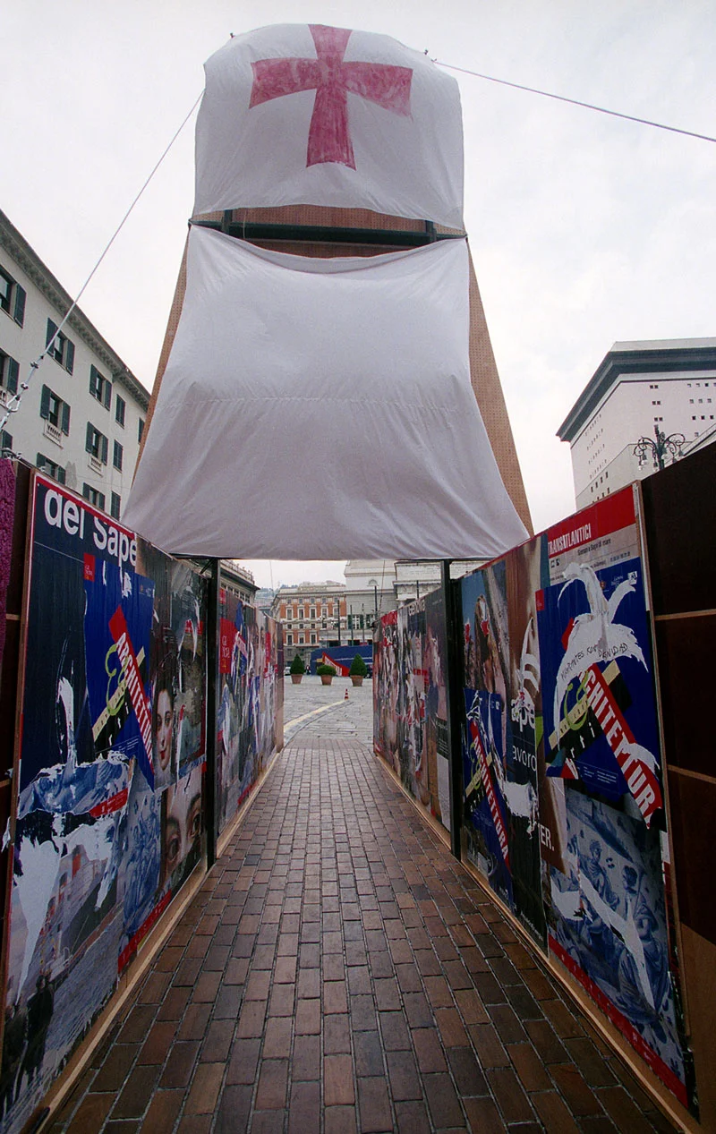 Genova, “Arti e Architettura 1900-2000”. Due grandi nomi dell'arte e del design italiano, Mimmo Rotella e Gaetano Pesce, allestiscono per Berti Pavimenti in Legno il “Chiosco per Genova 2004-2005”, un impianto visionario per sostenere la candidatura della città a capitale europea della cultura. Intorno a noi le installazioni sponsorizzate da aziende come Permasteelisa, Cirva, Altran Italia, Leggeri, Trenitalia, Flos, Bisazza, Ceramiche Marazzi, Metropolitana di Napoli, Ansaldo, Intergroup Italia, Haas-Fertigbau e The Elsa Peretti Foundation.